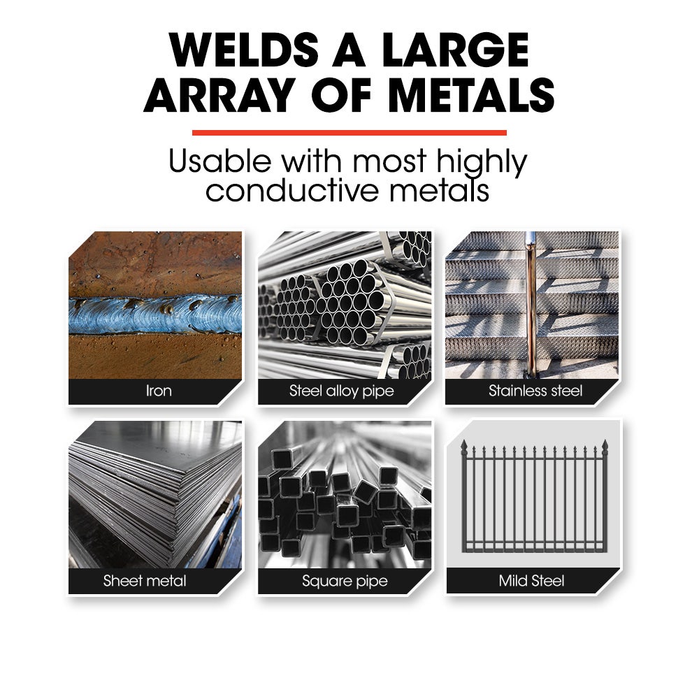 - Weldable Metals: Cast Iron, Chromoly, Copper, Stainless Steel, Steel, Most Highly Conductive Metals