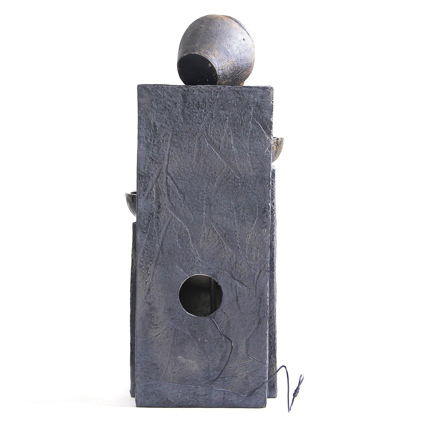 ? ? ?Sit back, relax, and enjoy the calming sounds the zen garden fountain creates as water gently cascades down the flowing basins and recirculates back up