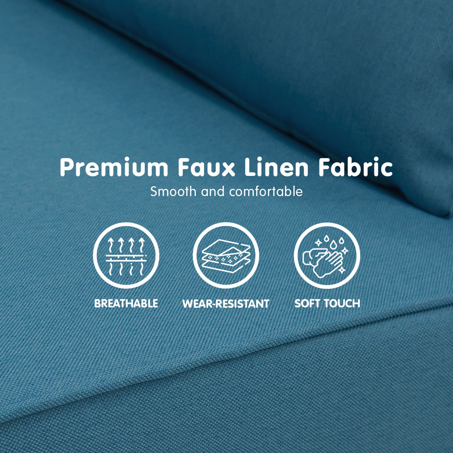 This adjustable Sarantino Sofa bed is composed of an easy to clean, durable and soft to touch linen inspired fabric, providing top-quality comfort with wooden legs and support while you sit. The sturdy solid wood frame 2-seater Sofa converts easily into a comfortable bed for you, your family and/or unexpected guests.
