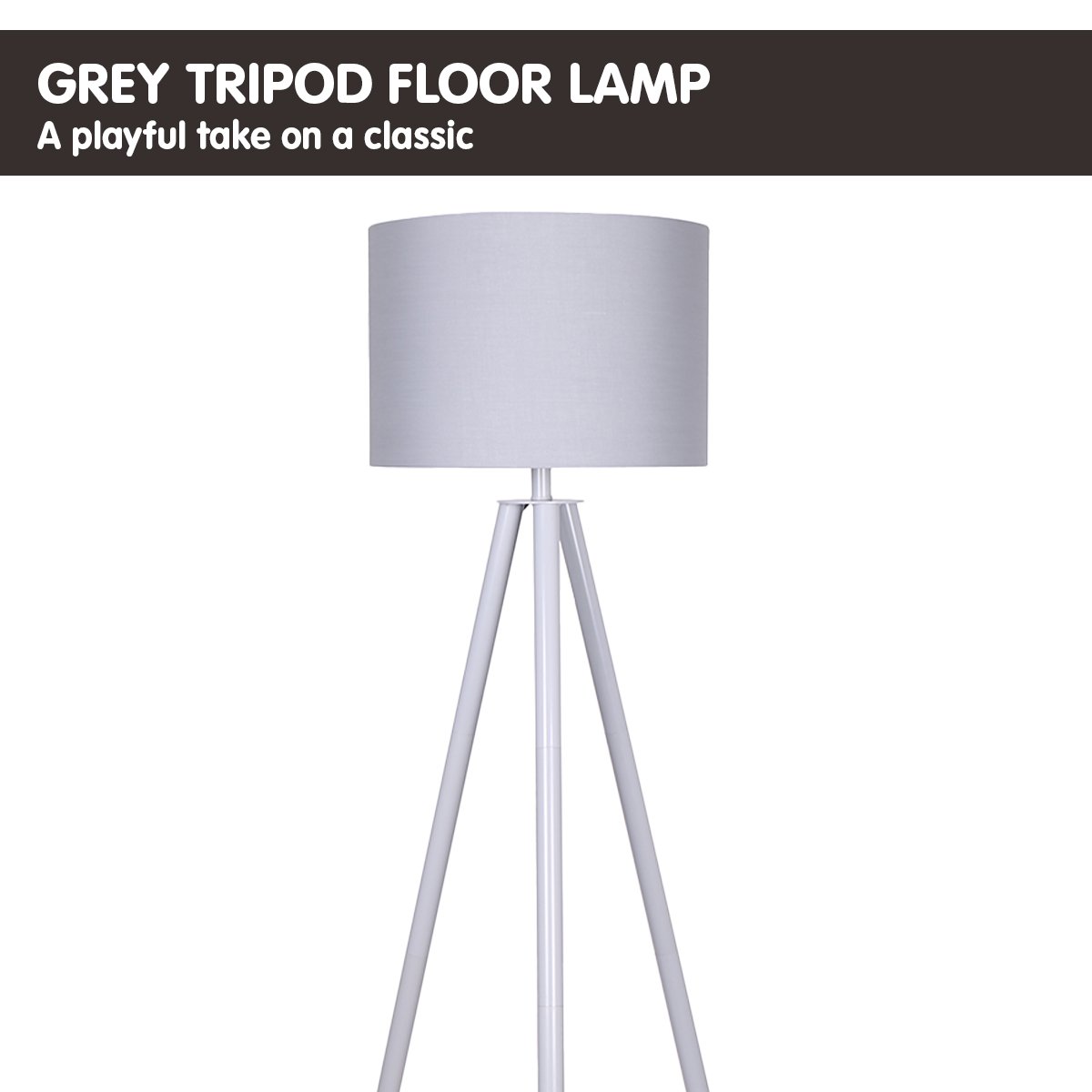 With a classic tripod stance, this floor lamp offers plenty of design versatility. The grey painted metal legs and fabric drum shade easily suit contemporary and modern spaces, while the eco-friendly rubberwood leg tips soften the look for urban, casual or updated lodge looks.