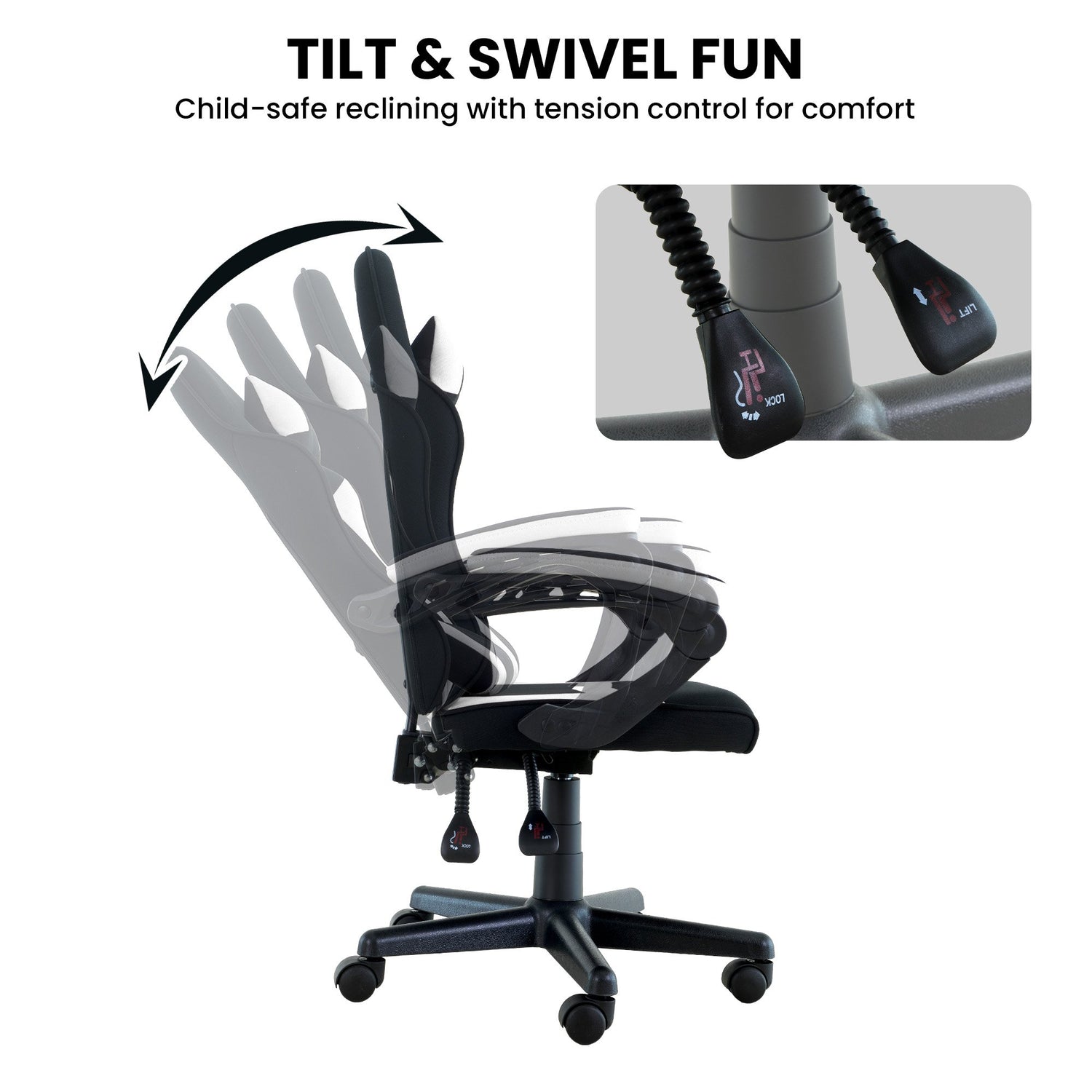 Sarantino Antre Kids Study Gaming Chair Black White Computer Seat Adjustable Height Ergonomic S