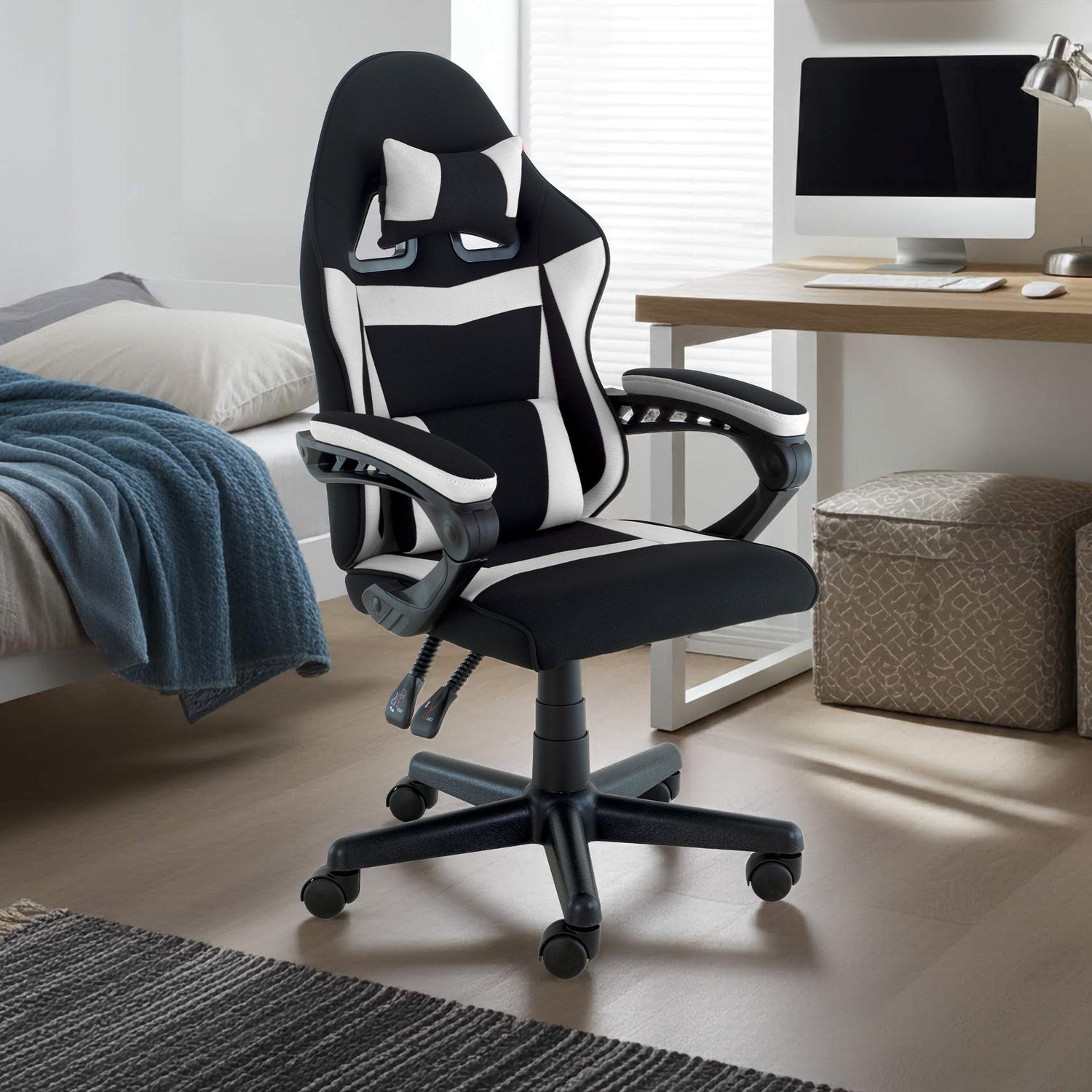 Removable headrest and lumbar cushions add extra comfort for long hours at your desk. Padded armrests and smooth-rolling castors enhance mobility, all supported by a stable nylon base. Whether you are studying or gaming, this chair brings functional design and standout style into any setup.