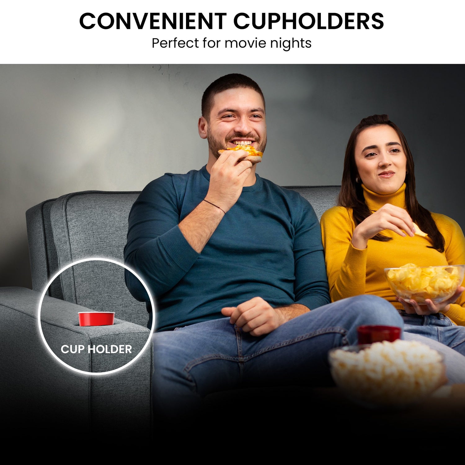 Bring the room together with this chic Scandinavian-style 2-seater sofa bed by Sarantino! Chic and elegant by design, its crafted with linen upholstery and easily transforms into a comfy bed, perfect for chilling out or hosting overnight guests. And guess what? It even comes with built-in cup holders for your drinks and snacks - great for movie nights!