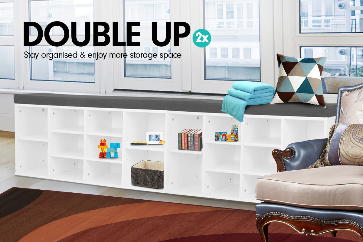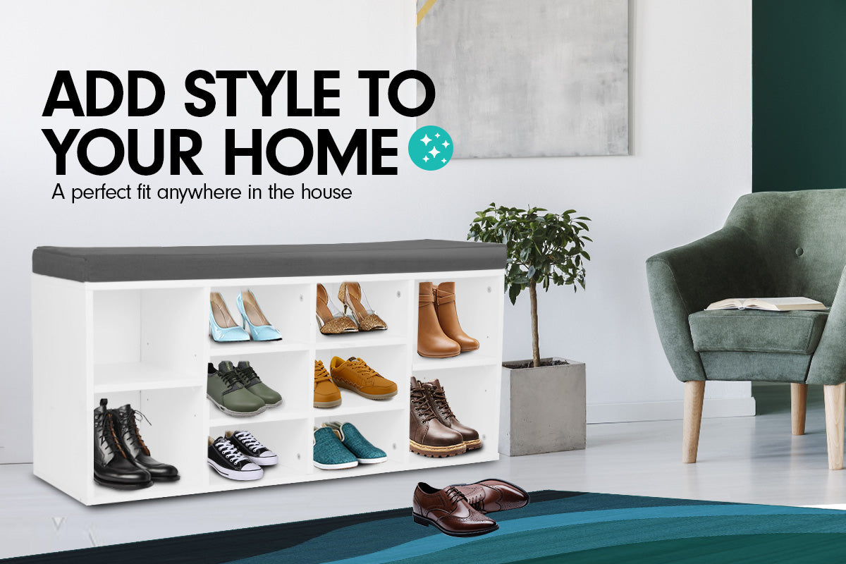 Eliminate the appearance of clutter and create a neat, organized space with this shoe cabinet with padded bench.