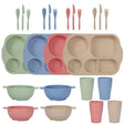 Scandinavian 4-colour Durable Eco-Friendly Wheat Straw Dinnerware Set - 24 Pieces with Plates, Bowls, Cups & Cutlery