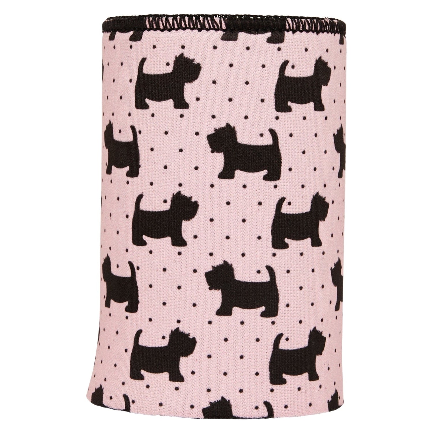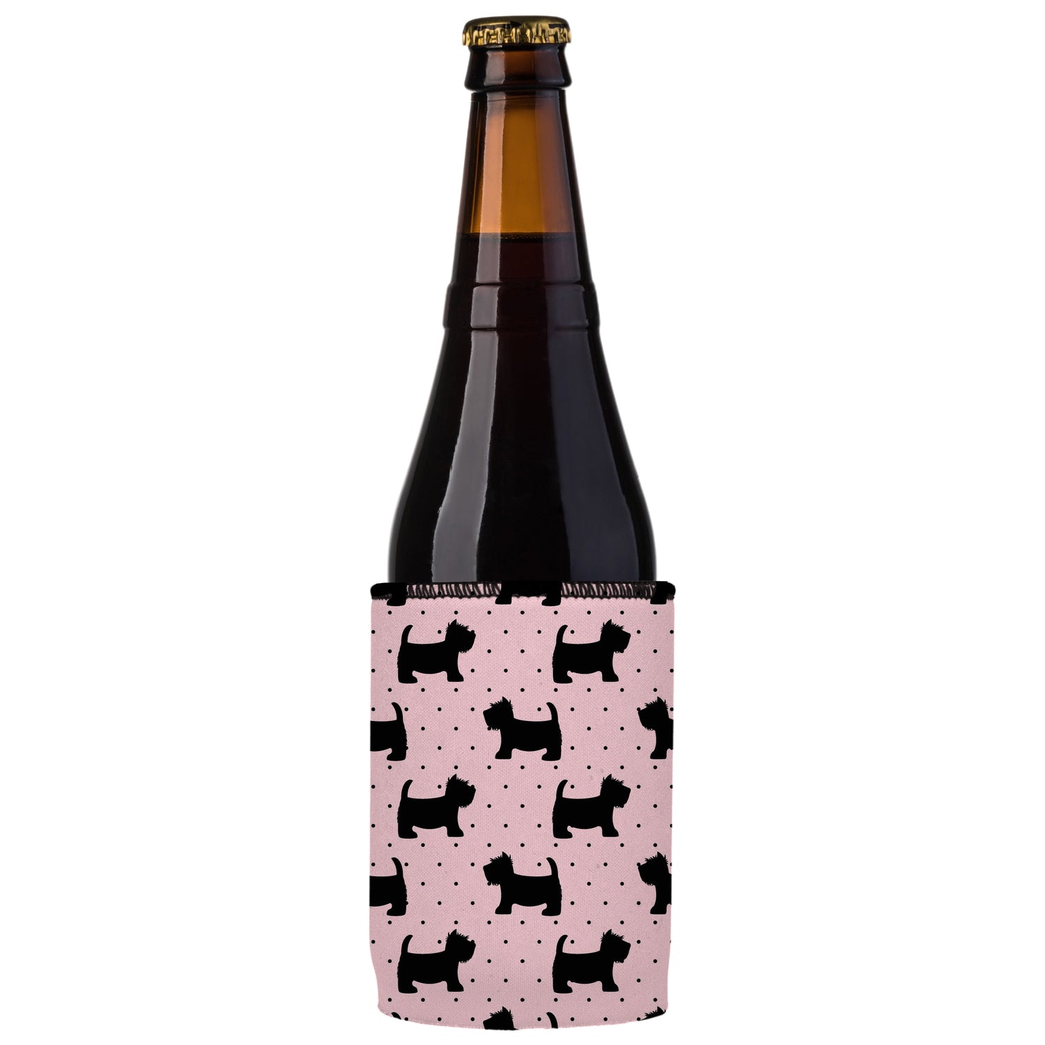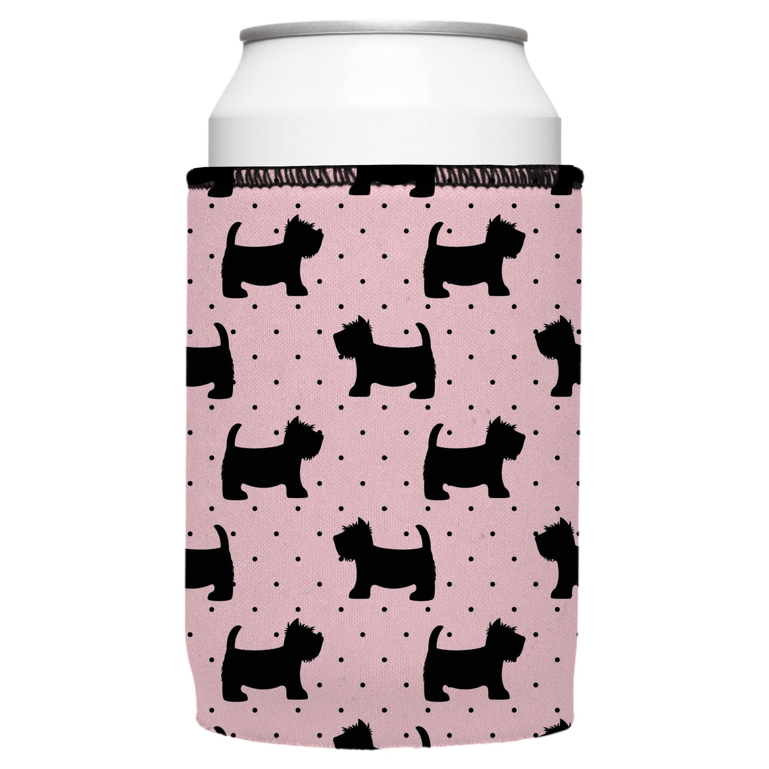 Keep your hands warm and your drink cold with this Stubbyz Scottish Terrier on Pink Polka Dots Stubby Cooler. This cute and functional pink and polka dotted cooler is perfect for any dog lover. The Scottish Terrier design is perfect for showing off your love for these furry friends. Whether you're at the game or on the go, this drink cooler is a must-have.