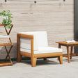 This wooden corner sofa is an ideal choice for you to relax and enjoy the weather, take a nap, or chat with your family or friends. With a timeless design, this corner chair adds a touch of rustic charm to your living space. The corner seat is made of solid acacia wood, a tropical hardwood, which is weather-resistant and highly durable. It has a solid construction and requires little maintenance. Combined with thickly padded cushions, this sofa provides the utmost comfort. The wooden sofa is specially designed for serving as a part of a lounge set and it also can be used as a single sofa. You can combine it with other modular segments like coffee table, footrest and middle sofa to create your own personal garden lounge set configurations! Note: In order to extend the life of your outdoor furniture, we recommend you to clean it regularly and do not leave it outdoors without protection unnecessarily.Clean: Use a mild soap solution.Storing: If possible, store in a cool, dry place indoors. If the product is stored outdoors, protect it with a waterproof cover. Wipe and dry the excess water or snow from flat surfaces after a rain or snowfall. Allow sufficient air circulation to avoid moisture-related damage.