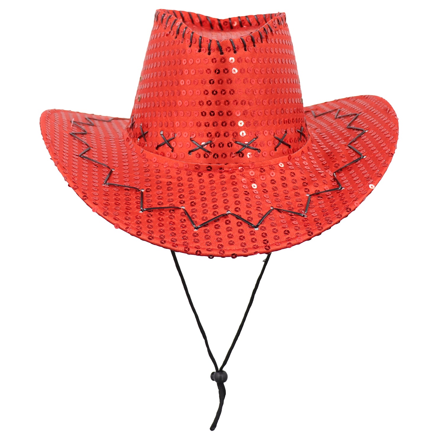 Add a touch of sparkle to your party outfit with our Sequin Cowboy Hat collection! These eye-catching hats come in a variety of vivid colors, each embellished with shimmering sequins to catch the light and draw attention. The structured brim and crown maintain the classic cowboy shape, while an adjustable chin strap ensures the hat stays in place whether you're line dancing or mingling. Perfect for parties, costume events, or just a fun night out, these hats are designed to fit most adults and make a statement wherever you go.