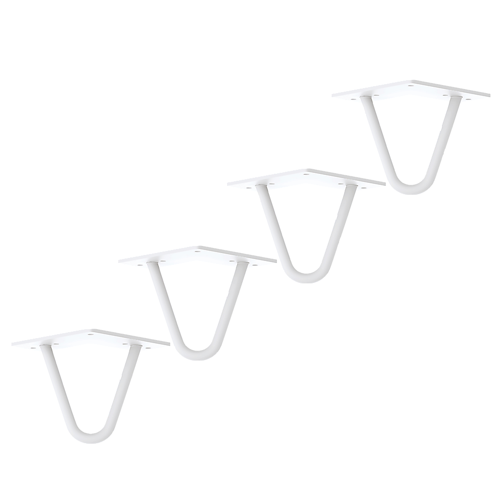 If you love all things Mid-Century Modern, you'll love these streamlined hairpin legs by Della Francesca. Done in neutral white, they will pair perfectly with practically any colour scheme or tabletop. Crafted from solid steel with a rust-resistant powder coating, these hairpin table legs are designed to last a lifetime. Four foot protector pads cushion your flooring from scratches and dents.