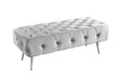 This ottoman features a stylish light grey velvet upholstery, offering both comfort and a contemporary look. The sturdy construction ensures durability for daily use.