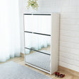 This modern, stylish mirrored shoe cabinet provides a perfect solution of keeping your room out of shoe clutter. The mirrored shoe organiser has three pull-down drawers, each of which can accommodate 3 to 4 pairs of shoes. The shoe rack is mounted directly to the wall. This strong and durable hall cabinet is made of high-quality material, making a highly practical place for neatly storing your shoes in style and clutter-free.