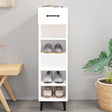 This trendy shoe cabinet keeps your shoes ventilated and saves you time when finding your favourite pair of shoes each day. Sturdy material: The engineered wood is of exceptional quality with smooth surface and also features strength, stability and resistance to moisture.Sufficient storage space: The shoe organiser provides shelves and a drawer to store your shoes, shoehorns, brushes, etc. You can also place some small things to find easily on the top and use them more conveniently.Metal legs: This shoe storage cabinet features metal legs, which add an industrial and relaxed style to your interior while ensuring stability.Space-saving design: This shoe shelf is an ideal storage solution for any narrow or tiny space, such as the hallway, dormitory, etc. WARNING:In order to prevent overturning, this product must be used with the wall attachment device provided.Note:Each product comes with an assembly manual in the box for easy assembly.