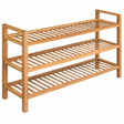 Our wooden shoe rack, with a simple yet timeless design and rustic flair, will make a practical as well as decorative addition to your hallway. The large shoe rack has been expertly crafted from durable, solid oak and is very functional. Thanks to its compact design and handles, our shoe organiser takes up very little space and is easy to move around. The sturdy and spacious shelves are ideal for keeping your shoes well ventilated. With our shoe rack, you will never have to be annoyed by shoes cluttering up your house again.