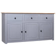 Introduce an air of elegance and convenience to your interior with our solid wooden sideboard! Made of solid pinewood, this drawer cabinet is exceedingly durable and sturdy. The side cabinet offers large storage space with 3 drawers and 3 compartments. Additionally, the sturdy tabletop is ideal for displaying decorative objects such as photo frames, potted plants, vases, etc. It is easy to wipe clean with a dry cloth. The storage chest is easy to assemble.