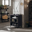 This sideboard will make a great addition to your living space. This book cabinet is made of engineered wood, which ensures its sturdiness, durability and long-lasting service. The metal legs also add extra stability. This side cabinet features 3 shelves, providing ample storage space. The sturdy tabletop is ideal for displaying decorative objects, photo frames or potted plants. Additionally, the storage cabinet is easy to clean with a damp cloth.