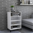 This sideboard will make a great addition to your living space. This book cabinet is made of engineered wood, which ensures its sturdiness, durability and long-lasting service. The metal legs also add extra stability. This side cabinet features 4 shelves, providing ample storage space. The sturdy tabletop is ideal for displaying decorative objects, photo frames or potted plants. Additionally, the storage cabinet is easy to clean with a damp cloth.