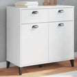 This classic sideboard featuring an industrial design is meant to meet your requirements and is an excellent addition to your room. Durable material: The engineered wood is of exceptional quality with smooth surface and also features strength, stability and resistance to moisture.Ample storage space: The buffet offers sufficient storage space to keep your essentials well-organised and within reach.Displaying function: The sturdy top of the hallway cabinet is ideal for displaying potted plants, framed photos and other decorative items.Practical handle: The side cabinet comes with handles that make it easy to open and close the cabinet while adding extra beauty. Warning:To prevent it from tipping over, this product must be used with the provided wall attachment device.