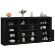 Decorate your room with this modern sideboard with LED lights, it easily blends with furniture in any style at your house. Durable material: The engineered wood is of exceptional quality with smooth surface and also features strength, stability and resistance to moisture.RGB LED lights: The buffet is equipped with vibrant RGB LED lights. With various customisable menus, you can effortlessly change the colour of the lights and even set them to adjust automatically. These LED lights not only enhance the contemporary look of the sideboard cabinet but also add to its trendy appeal.Ample storage space: The storage cabinet offers plenty of space to keep your everyday items neatly arranged and easily accessible.Displaying function: The sturdy top of the hallway cabinet is ideal for displaying decorative objects, photo frames, or potted plants.Practical doors: Keep your essentials free from dust by hiding them behind the doors of the side cabinet. Good to know:The product has a USB connector that requires a certified 5V USB power source (not included). Warning:To prevent it being overturned, this product must be used with the provided wall attachment device.