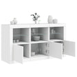 Decorate your room with this modern sideboard with LED lights, it easily blends with furniture in any style at your house. Durable material: The engineered wood is of exceptional quality with smooth surface and also features strength, stability and resistance to moisture.RGB LED lights: The buffet is equipped with vibrant RGB LED lights. With various customisable menus, you can effortlessly change the colour of the lights and even set them to adjust automatically. These LED lights not only enhance the contemporary look of the sideboard cabinet but also add to its trendy appeal.Ample storage space: The storage cabinet offers plenty of space to keep your everyday items neatly arranged and easily accessible.Displaying function: The sturdy top of the hallway cabinet is ideal for displaying decorative objects, photo frames, or potted plants.Practical doors: Keep your essentials free from dust by hiding them behind the doors of the side cabinet. Good to know:The product has a USB connector that requires a certified 5V USB power source (not included). Warning:To prevent it being overturned, this product must be used with the provided wall attachment device.