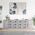 These classic sideboards, featuring a timeless look, are meant to be an excellent addition to your home. Durable material: The engineered wood is of exceptional quality with a smooth surface and features strength, stability and resistance to moisture.Ample storage space: The cabinet offers ample storage space for keeping your various daily essentials well organised and within easy reach.Displaying function: You can also place your favourite photos, decorations or flowers on top of the storage cabinet to enrich your life. Warning:To prevent it being overturned, this product must be used with the provided wall attachment device
