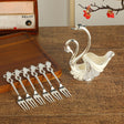 Silver Elegant Double Swan Cutlery Holder Set with 6pcs Fork