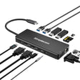 - 13-in-1 Versatility: Transform one USB-C port into 13 ports, including four USB-A ports, one USB-C data port, dual HDMI, VGA, Gigabit Ethernet, SD/MicroSD card slots, a 3.5mm audio jack, and 100W Power Delivery charging.
