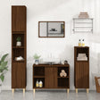 This sink cabinet is meant to be a great addition to your bathroom, giving it a tidy and striking appearance! Durable material: The engineered wood is of exceptional quality with smooth surface and also features strength, stability, and resistance to moisture.Ample storage space: The bathroom sink cabinet has 5 compartments and a door, offering various storage options and extra space to store items in your bathroom. The top of the bathroom cabinet is ideal for placing the sink.Wooden feet: The solid eucalyptus wood feet give the under sink cabinet a natural and pleasant look while ensuring stability.Easy-to-clean surface: The bathroom furniture is easy to clean with a damp cloth. Warning:To prevent it being overturned, this product must be used with the provided wall attachment device. Good to know:To make assembly as easy as possible, each product is delivered with a manual.The sink is not included.