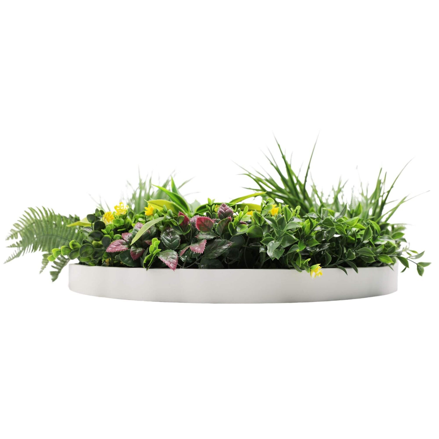 Slimline Artificial Green Wall Disc Art 60cm Country Fern UV Resistant (White)