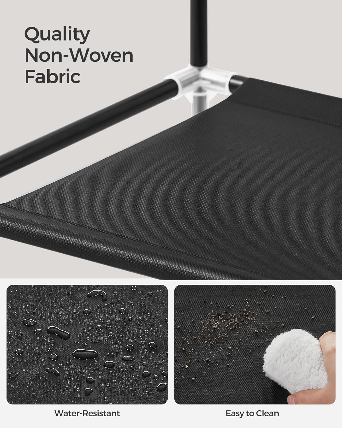 - Sturdy metal frame and quality non-woven fabric shelves for long-lasting use