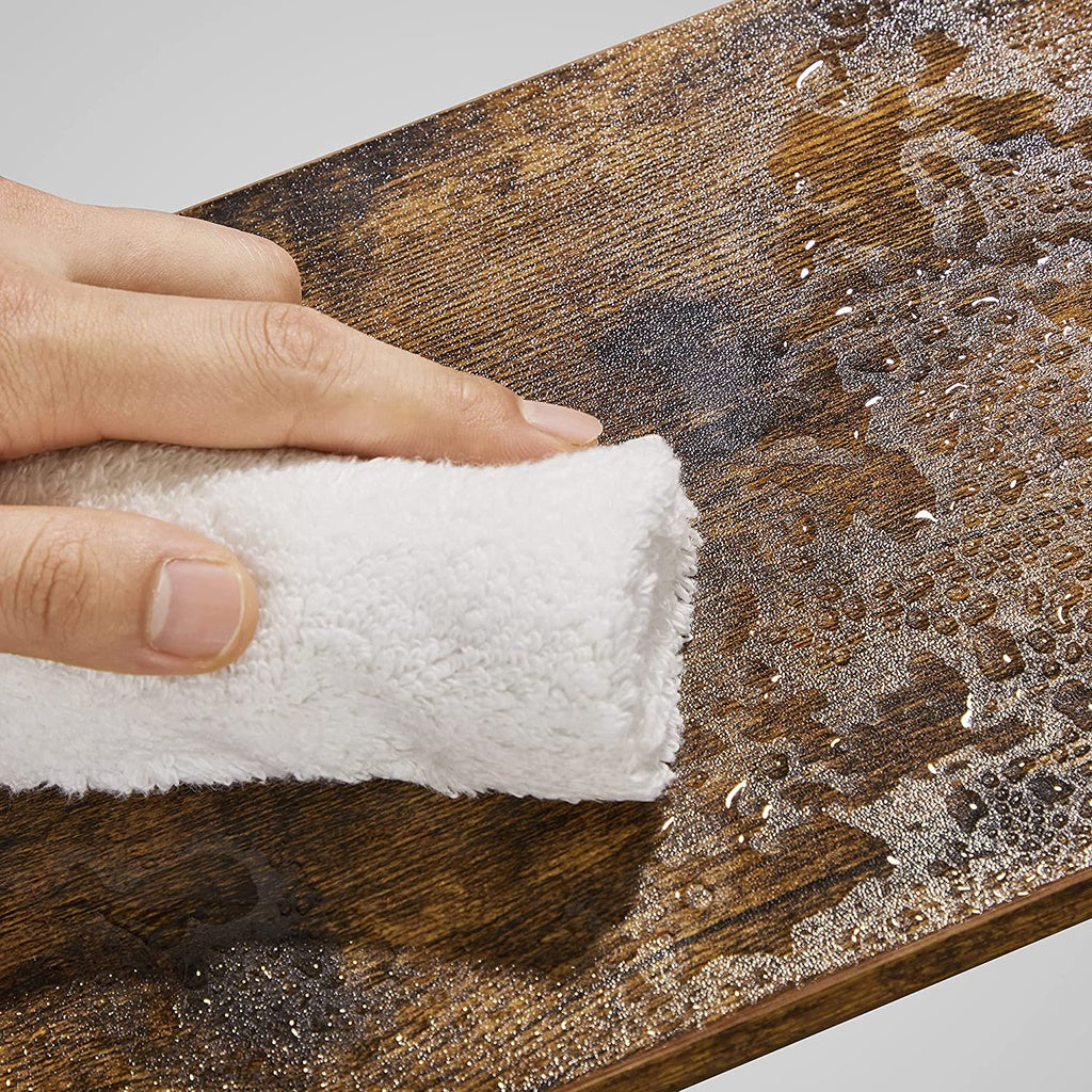 To keep your cabinet shelf organizers looking their best, simply wipe them with a damp cloth and avoid using abrasive cleaners. This will help maintain the rustic brown finish to match your buffets & sideboards decor.