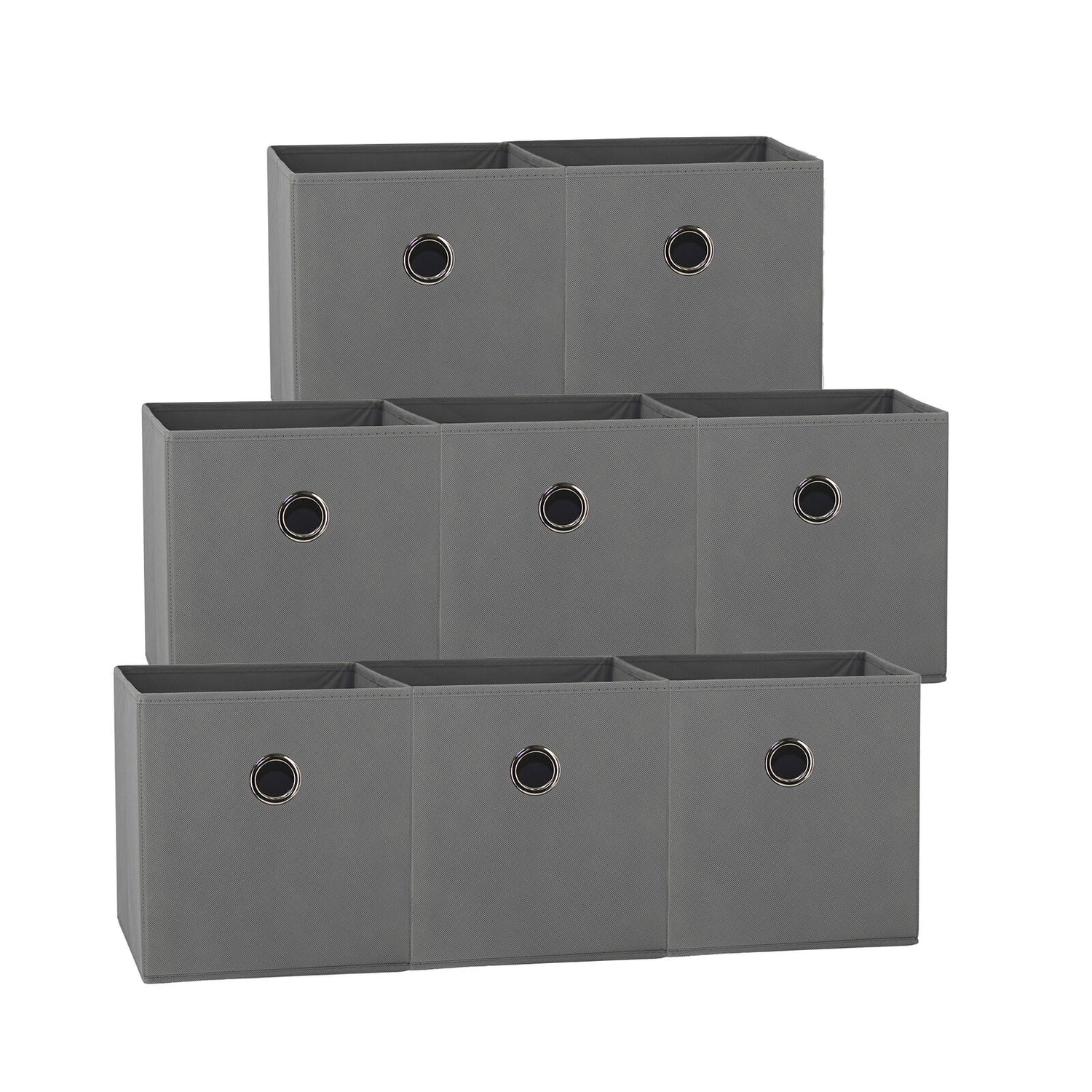 SORTI 27x28x27 CM Grey 8-Pack Foldable Storage Cubes - Fabric Bookcase Organizers for Toys and More