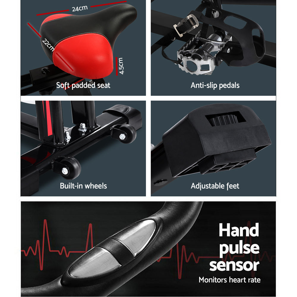 Spin Exercise Bike Flywheel Fitness Commercial Home Workout Gym Machine Bonus Phone Holder Black
