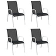 This contemporary stackable chair set is meant to be a real eye-catcher in your garden, dining room or patio. The comfortable armchairs have a powder-coated steel construction, making them sturdy and stable. Thanks to the strong Textilene fabric, these outdoor chairs are weather-resistant and easy to clean. The chairs can also be stacked to save space when not in use. Relax and take a load off while enjoying your outdoors on these comfortable and durable dining chairs!