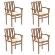 This outdoor wooden stackable chair set has a timeless design. The chairs will suit a wide variety of settings, such as homes, offices, bars and cafes, thanks to their simple yet stylish design. Constructed from extremely durable teak hard wood, this set of teak furniture has been seasoned, kiln dried and then fine sanded to give a very smooth appearance. Teak wood is known for its exceptional strength and weather resistance, making it far more suitable for garden furniture than any other kind of wood. Teak wood is the perfect choice if you want to purchase a long lasting piece of garden furniture. These chairs are stackable when not in use to save storage space. The product is applied with beautiful finish to give the wood a warm colour. What's more, the included cushions provide extra comfort. Each cushion has 2 sets of ropes to fix it on the chair tightly. Note: In order to extend the life of your outdoor furniture, we recommend you to clean it regularly and do not leave it outdoors without protection unnecessarily.Clean: Use a mild soap solutionStoring: If possible, store in a cool, dry place indoors. If the product is stored outdoors, protect it with a waterproof cover. Wipe and dry the excess water or snow from flat surfaces after a rain or snowfall. Allow sufficient air circulation to avoid moisture-related damage.
