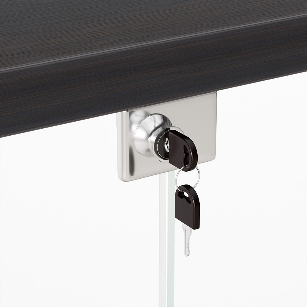 For added security, the cabinet includes a lock on the glass door to keep valuables safe and dust-free. The 4mm thick tempered glass shelves are durable, while the MDF frame provides stability and a refined finish.