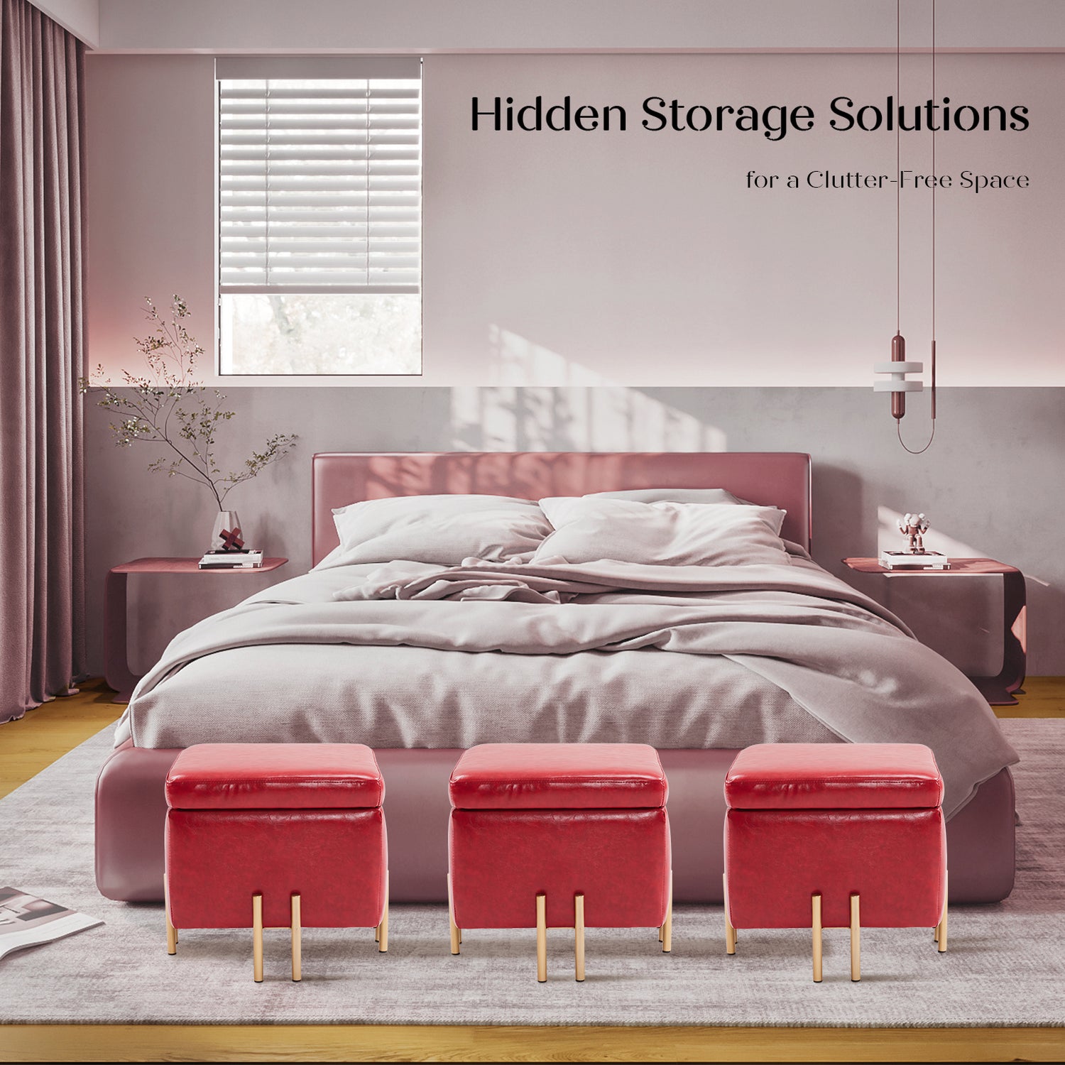 This ottoman features a high-quality PU leather covering in a vibrant red color, offering a sleek and modern look while being easy to clean and maintain.