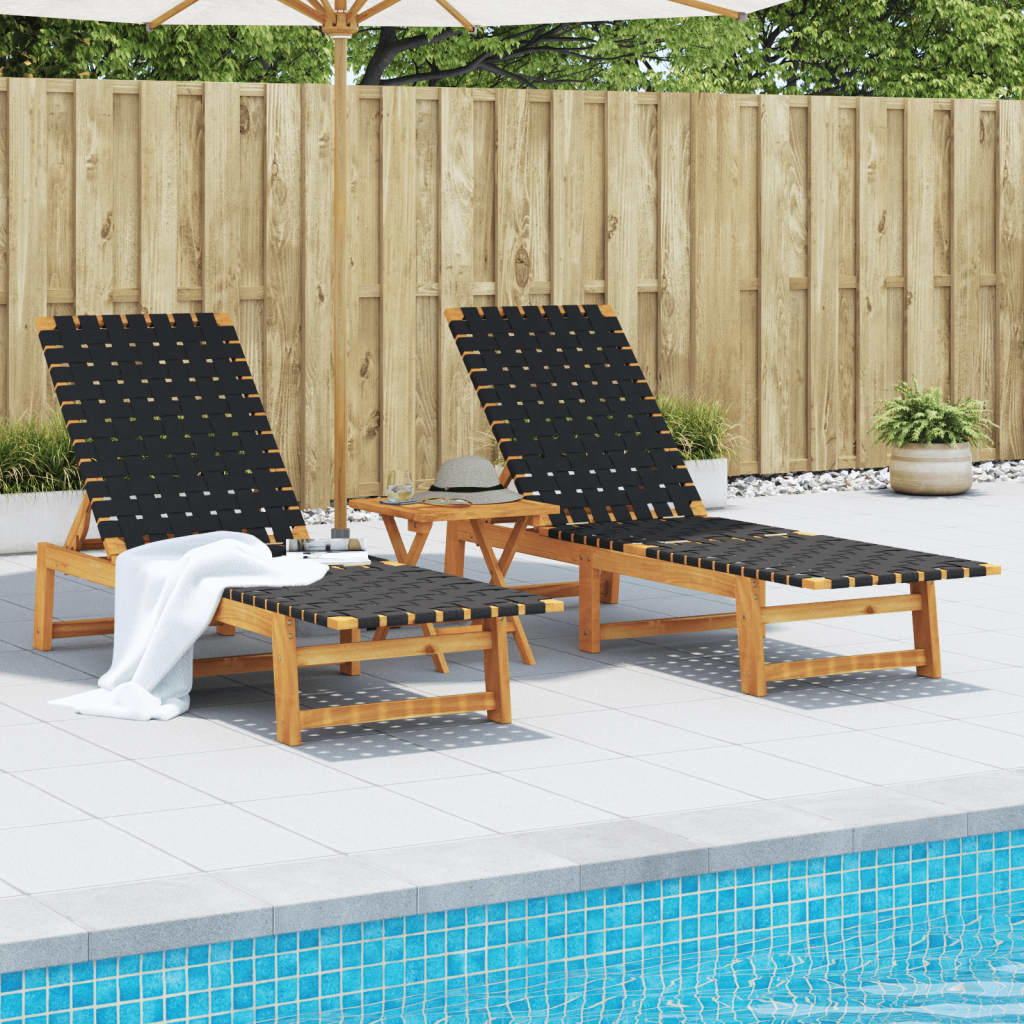 These classic sun loungers are ideal for sunbathing and relaxing near the swimming pool, on the patio or in the garden. Solid acacia wood: Solid acacia wood is a beautiful natural material. Acacia wood is a tropical hardwood, which is dense, sturdy, and durable. Therefore, the lounger frame made of oil-finished acacia wood is stable and easy to maintain.Long-lasting material: Olefin fibre, also known as polypropylene fibre (PP), is comfortable, tough, long-lasting and highly resistant to sunlight fading.Adjustable backrest: The comfortable sun lounger has a reclining backrest with 4 positions for optimal relaxation.Webbing design: The seat and back of the garden lounger are designed with webbing for comfort, elegance and breathability. Good to know:To make sure your outdoor furniture stays beautiful, we recommend protecting it with a waterproof cover.