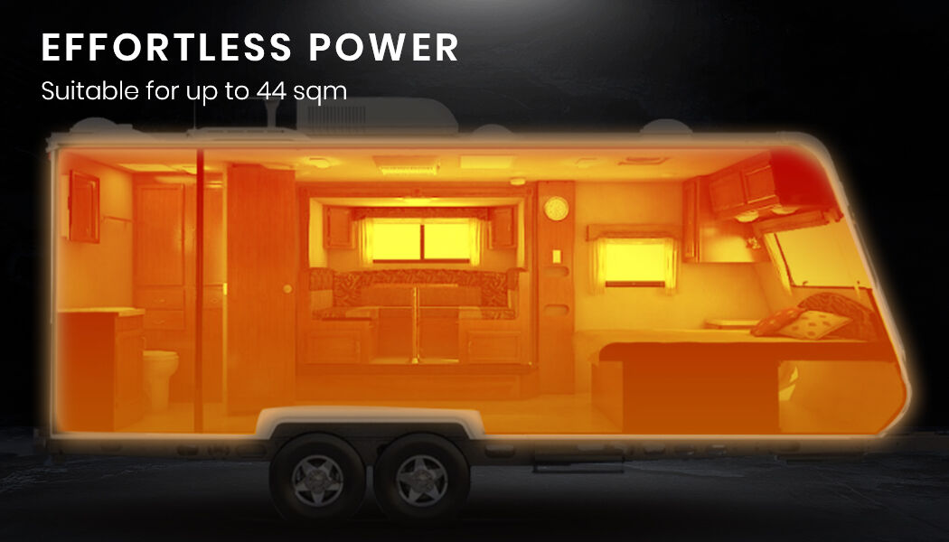 The Thermomate offers powerful, efficient performance thanks to a unique heatsink design that is cast from premium 1050 grade aluminum offering superior thermal conductivity. Whether you're in a caravan, motorhome, camper trailer, truck or boat your space will be toasty in no time, and any frost on windows will quickly disappear. Once the target temperature is reached, the Thermomate is surprisingly quiet, so you’ll have happy campers and everyone will enjoy a good night’s sleep.