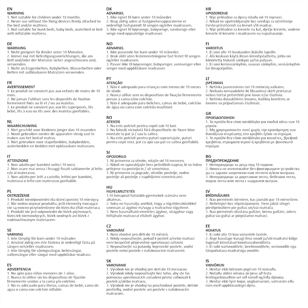 - Only use mattresses with a minimum size of 90 x 190 cm and a maximum size of 155 x 190 cm