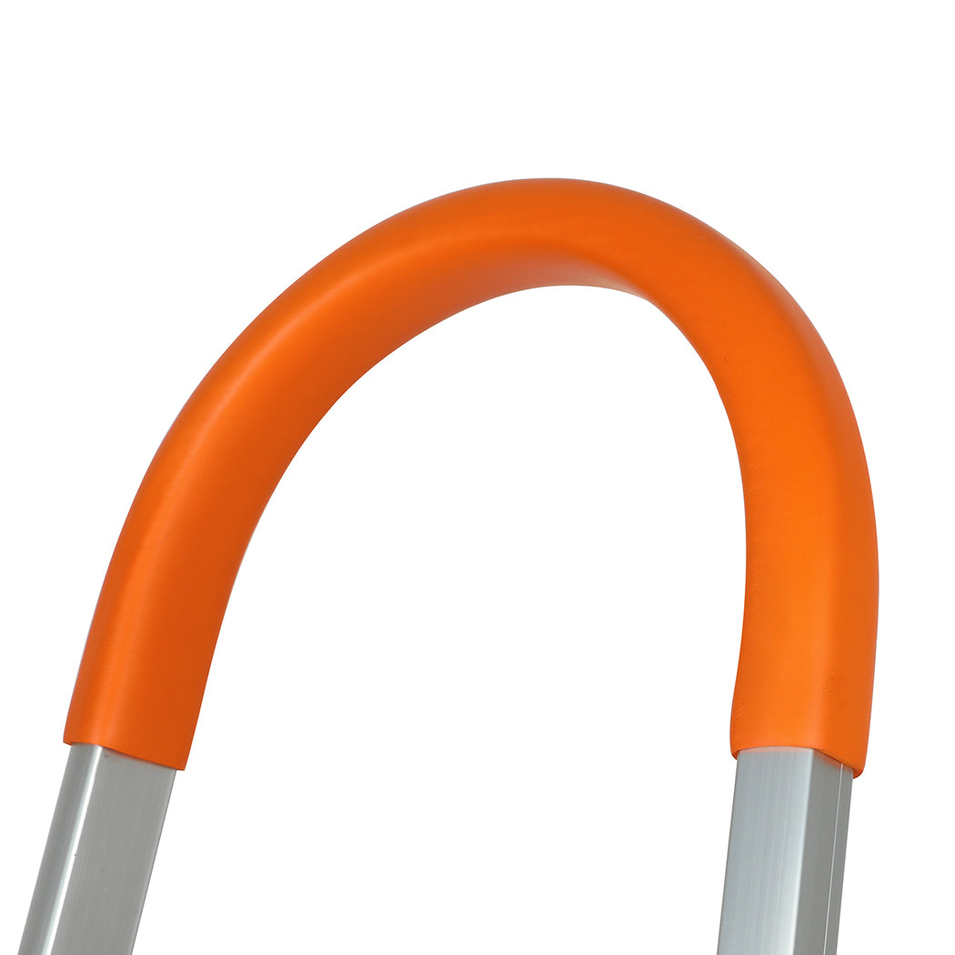 The large rubber feet are perfect for gripping the floor while you are on the ladder. You have a comfy foam handle to hold while climbing up. Perfect for pushing into a corner and not marking the wall.