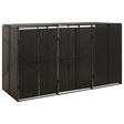 This triple wheelie bin shed is ideal for hiding your bin from view in the garden. Durable material: Poly rattan is an exceptional resistance material and durable with different weather conditions. It also needs little maintenance.Stable frame: The powder-coated steel frame ensures sturdiness and stability.Practical design: The lid of this bin shed can be opened for easy access to the wheelie bin when depositing rubbish. It also has doors with lock at the front so the bin can be easily removed and emptied. Note:Each product comes with an assembly manual in the box for easy assembly.Wheelie bin is not included in delivery.