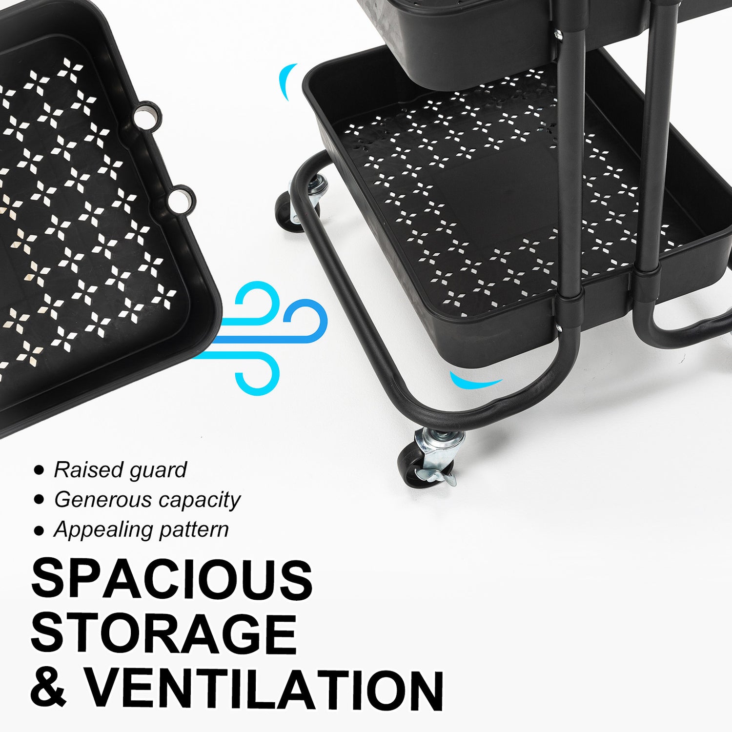 Sturdy and Durable and Multifunctional: The storage cart with wheels is made of a high-quality steel frame and ABS trays. The thick frame makes it sturdy enough to hold up more items, which surface is finished with high-temperature paint, have strong corrosion resistance, non-toxic harmless, no smell, anti-corrosion, waterproof, scratch-resistant.