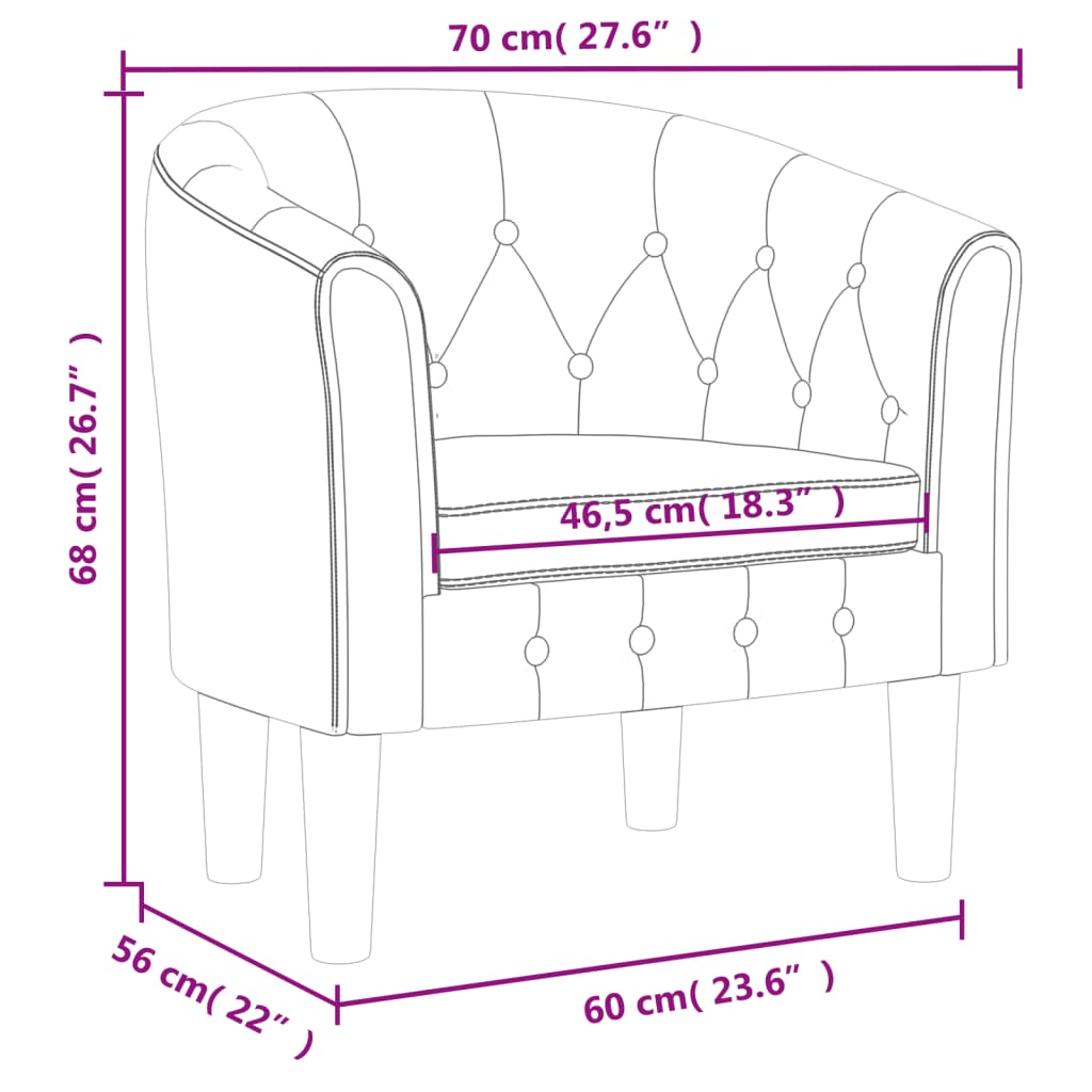 - Tub chair dimensions: 70 x 56 x 68 cm (W x D x H)