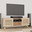 This classic TV cabinet is a practical as well as an eye-catching addition to your interior. Durable material: The engineered wood is of exceptional quality with smooth surface and also features strength, stability and resistance to moisture.Ample storage space: Equipped with 4 compartments, the TV stand provides ample storage space to keep all your magazines, DVDs and any other items well organised. Also, the nature rattan weaving design in the door adds extra beauty.Solid pinewood feet: The wooden feet give the TV unit a natural and pleasant look while ensuring stability. It can blend well with any interior decor.Sturdy top: You can also place your favourite photos, decorations, or flowers on top of this media cabinet to enrich your life. Note:Each product comes with an assembly manual in the box for easy assembly.