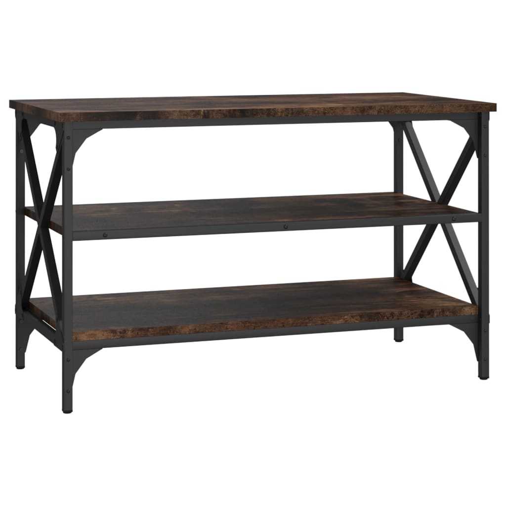 This sturdy TV cabinet is designed to be a focal point of your room with a trendy yet practical design. Durable material: The engineered wood is of exceptional quality with smooth surface and also features strength, stability and resistance to moisture. Made of engineered wood, the TV stand is easy to clean.Stable frame: The iron frame of the TV unit ensures sturdiness and stability.Spacious storage: The media cabinet provides ample storage space for keeping your magazines, books, remote controls and other small items well organised and within reach.Displaying function: The sturdy top of the media unit is ideal for displaying decorative items like photo frames and plants.Industrial frame: Add a charming industrial style to your current interior decor. It adds the inspired design of old factories and industrials space to your living area. Warning:In order to prevent overturning, this product must be used with the wall attachment device provided. Note:Each product comes with an assembly manual in the box for easy assembly.