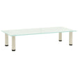 This contemporary TV stand with tempered glass construction adds a modern touch to your living room and bedroom. This TV table is made of thick tempered glass and heavy-durable stainless steel, making it exceedingly sturdy and safe. The strong tabletop can be used for placing television, laptop and other multimedia devices. You can also put your drinks, vases and other small items on the TV stand. Additionally, the smooth surface is easy to clean with only a damp cloth.