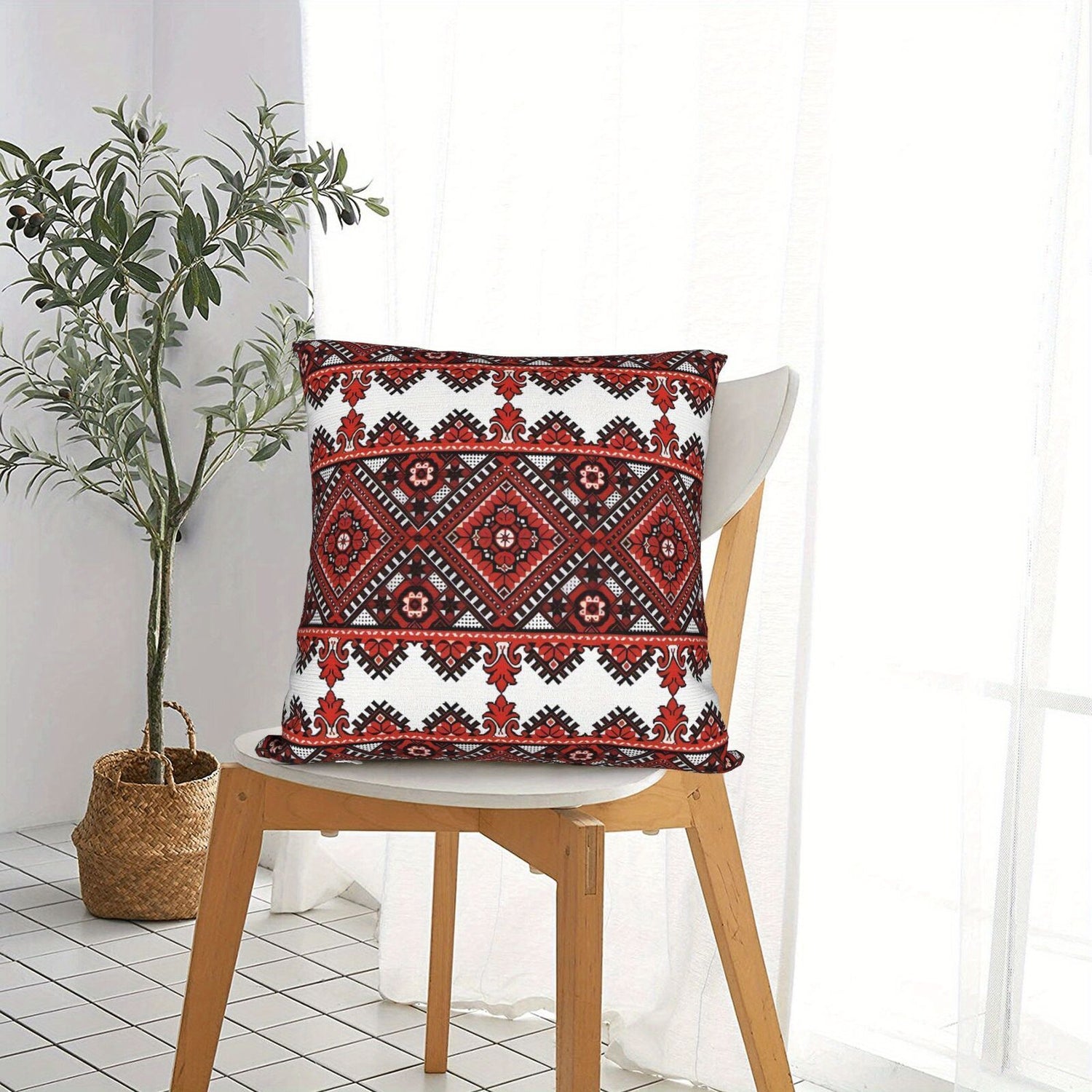 Add a bold splash of culture to your home with this eye-catching Ukrainian cushion cover. Featuring a stunning red, black and white geometric folk design inspired by traditional embroidery, it's the perfect accent for your lounge, bedroom or reading nook. Whether you're repping your roots or just vibing with that artsy heritage feel, this cover is all about comfort and character.