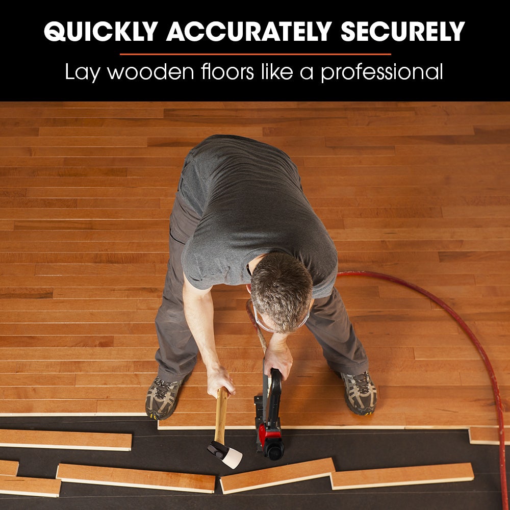 Super-lightweight and powerful, the pneumatic Unimac Nail Staple Gun will move in step with you, effortlessly driving 37-50mm nails and 25-50mm staples into both unfinished and pre-finished hardwood flooring at 48Nm. Its ergonomic extended handle makes for a comfortable working position. And it's as easy on the floorboards as it is on your body, featuring a pre-finished floorboard adaptor foot for truly polished results. It has all the makings of a great performance.