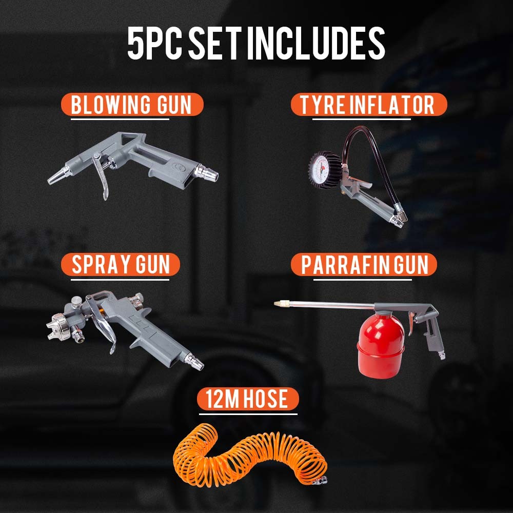 Unimac has you covered, as the ACM-500 comes complete with 5 bonus air tools attachments; Spray Gun, Parrafin Gun, Tyre Inflator, Blowing Gun and Flexible 12m hose