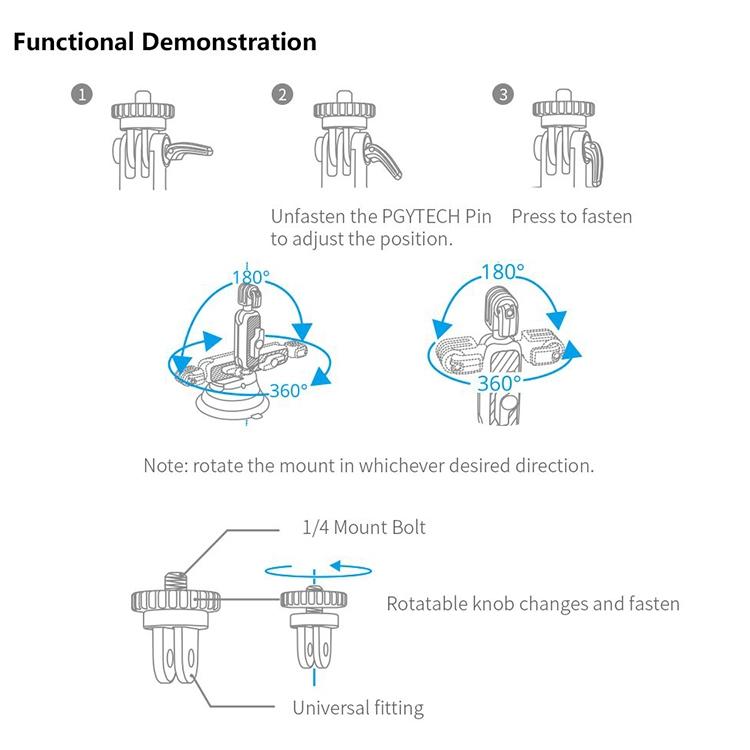 • The sports camera universal adapter is reserved on the top, and the standard 1/4 screw adapter is equipped with a wide range of equipment.